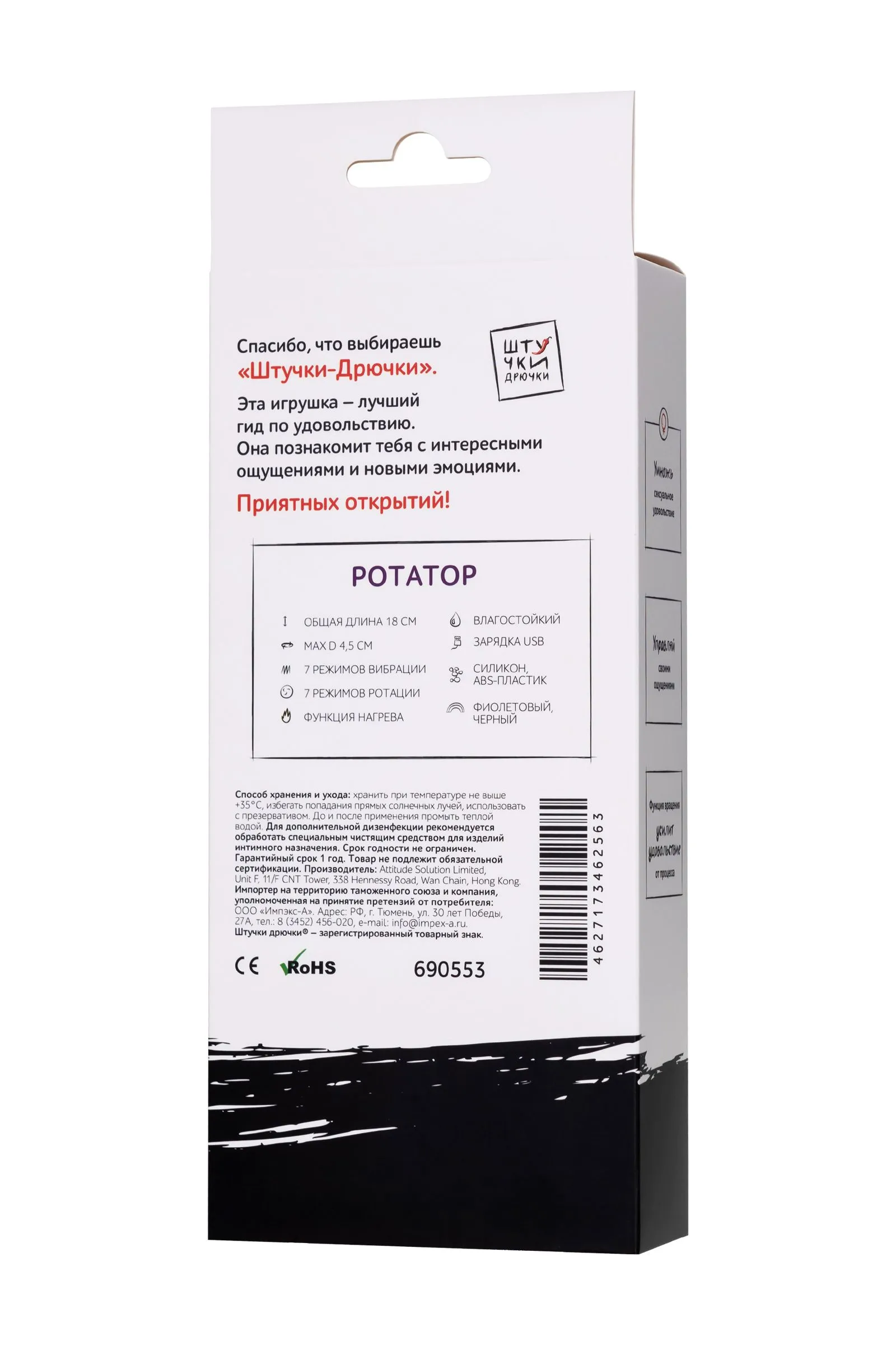 Хозяин твоих ощущений! Маневренный вращающийся ротатор обладает незаурядной внешностью. Форма игрушки выполнена в виде нежной лапки с ребристой и выпуклой внутренней поверхностью, что добавит чувственных ощущений при стимуляции эрогенных зон, поможет тебе найти заветную точку G и испытать волнительный вагинальный оргазм. В арсенале у этого девайса есть 7 режимов вибрации и 7 вариантов ротации, да еще и пламенный секрет! Функция нагрева, которой он владеет в совершенстве, усилит ласки в интимной зоне и заставит пылать от его прикосновений. Ты легко подстроишь его движения под свои желания, а полученные ощущения умножат сексуальное удовольствие. Время работы на максимальной скорости – 1,5 часа.