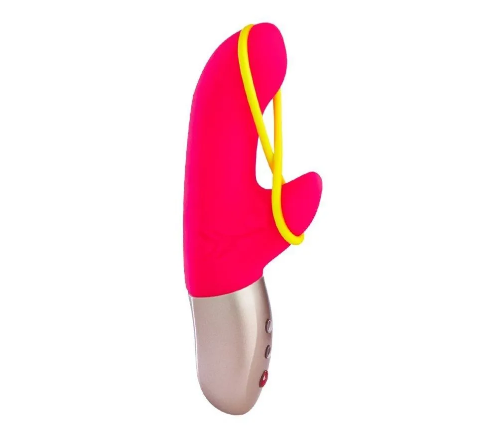 Amorino - это инновационный вибратор с силиконовой лентой, натянутой между закругленными кончиками для стимуляции половых губ. При необходимости неоновую желтую ленту легко снять.