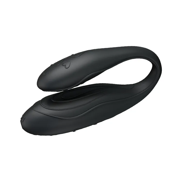 Вибратор для двоих с дистанционным управлением. Отлично подойдет тем парам, которые не против разнообразия в сексуальных отношениях и воплощения своих эротических фантазий в реальность. Эта интим-игрушка имеет 30 различных вариантов вибрации, которые управляются дистанционным пультом, входящим в комплект. Круто изогнутый вибратор будет нежно ласкать эрогенные зоны, позволяя наслаждаться двоим партнерам одновременно. Роскошная интим-игрушка имеет великолепный дизайн и выполнена из высококачественного силикона. Характеристики: цвет – черный, материал – силикон, общая длина – 10 см, рабочая длина – 9 и 7 см, диаметр – 3 и 2 см. Перезаряжаемый (USB шнур в комплекте), пульт работает от 2ААА батареек (нет в комплекте). Упаковка: картонная коробка с принтом.