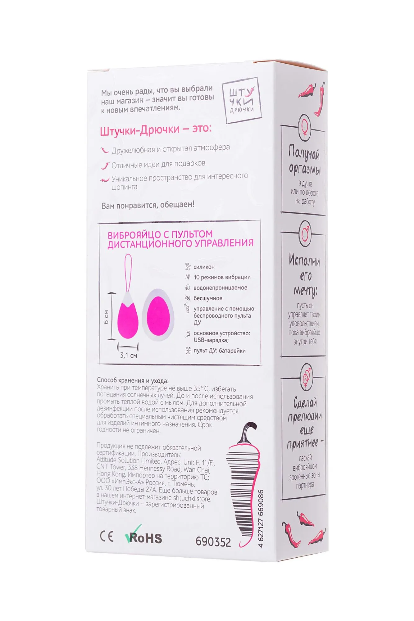 Изящный и стильный мини вибратор "Штучки-Дрючки" каплевидной формы с вибрацией выполнен из нетоксичного и гипоаллергенного 100% силикона высокого качества. Беспроводной пульт дистанционного управления позволит обеспечить получение длительного наслаждения благодаря 10-ти режимам вибрации. Водонепроницаем и прост в уходе. Идеальный способ попрактиковать упражнения Кегеля. Мини вибратор "Штучки-Дрючки", выполненный в форме капли укрепляет ЛК-мышцы, улучшает тонус и упругость мышц влагалища, а также помогает увеличить продолжительность и интенсивность оргазмов. Просто нанесите ваш любимый лубрикант и вставьте вибратор. Он абсолютно бесшумен, а петлю для извлечения легко спрятать в нижнем белье. Рекомендуется использовать игрушку не более 2 часов, начиная с 20-30 минут ежедневно.