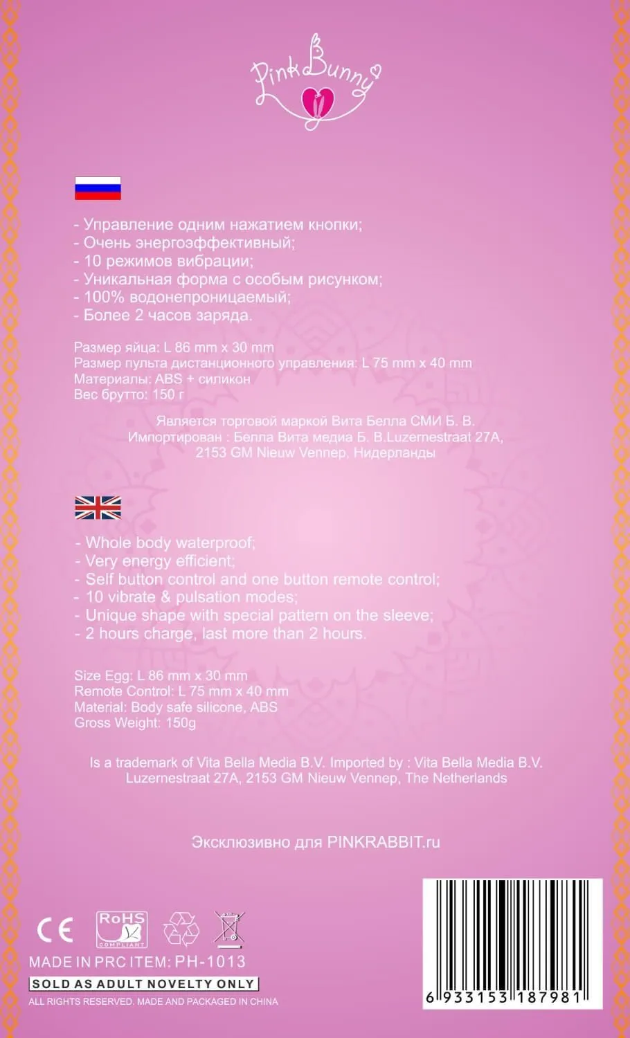 Используйте с лубрикантами только на водной основе, очищайте специальным средством для интимных игрушек либо мягким мылом и водой. Храните в отдельном тканевом мешочке.